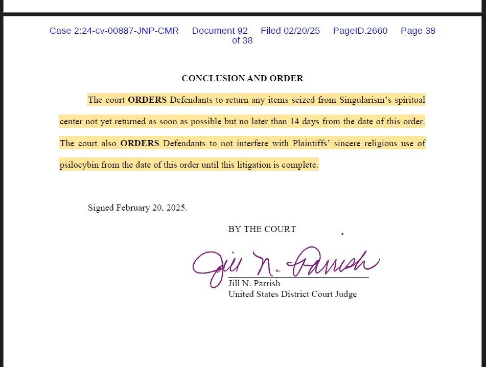 A major battle for psychedelic healing has been quietly developing in Salt Lake City, Utah. Claiming constitutional protections for their entheogenic religion, Singularism, a small entheogenic religious group, filed a In a lawsuit to protect themselves from governmental harassment. In stunning rebuke, a federal judge ruled that a small religious minority’s psilocybin use is protected by the state’s Religious Freedom Restoration Act.........READ MORE