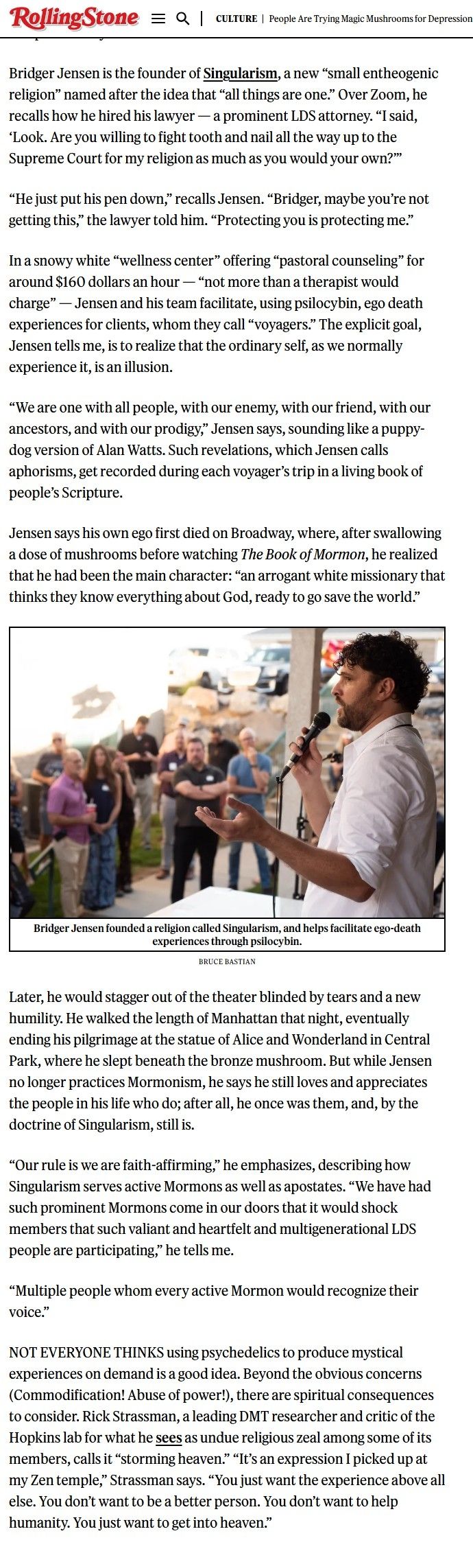 "Singularism is challenging conventional boundaries of religion, blending ancient entheogenic practices with modern legal frameworks to create a new paradigm for spiritual expression.”